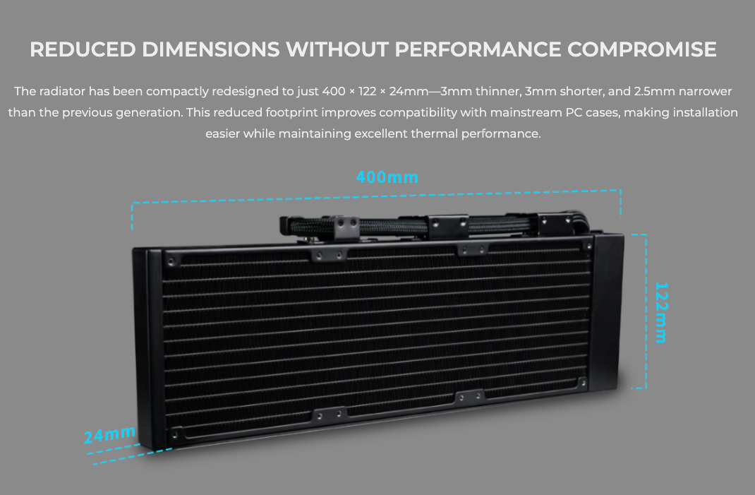 - ASUS ROG Ryujin IV Radiator Dimension: 394 x 140 x 32 mm
