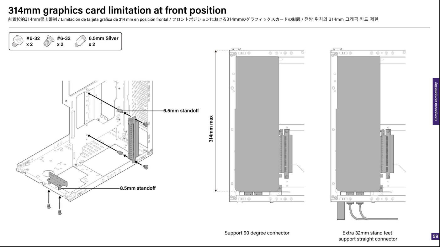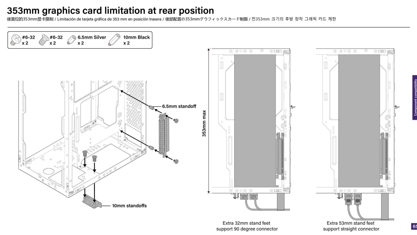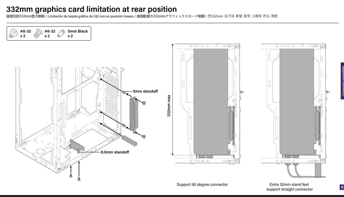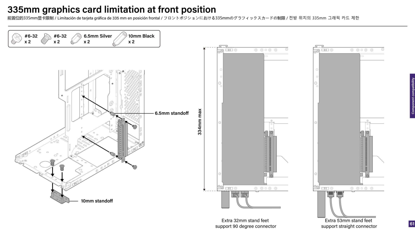 - If GPU length exceeds 320 mm length, you should install Aluminum Feet to increase the base clearance.
