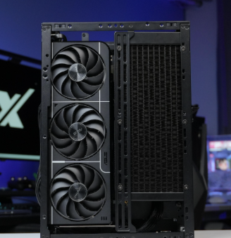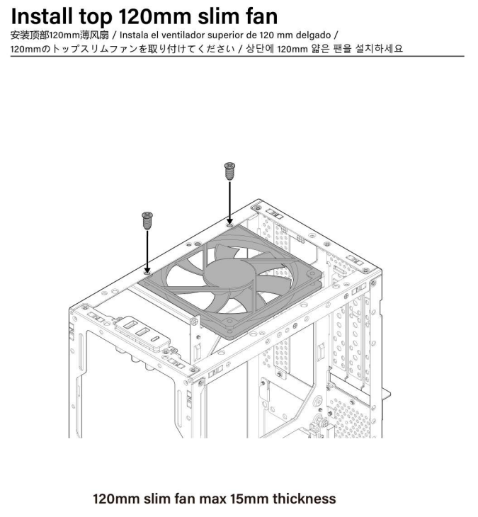 When you install a GPU under 330 mm long, the top of the ITX chassis clears enough room to mount a slim 120 mm fan for exhaust or supplementary cooling.