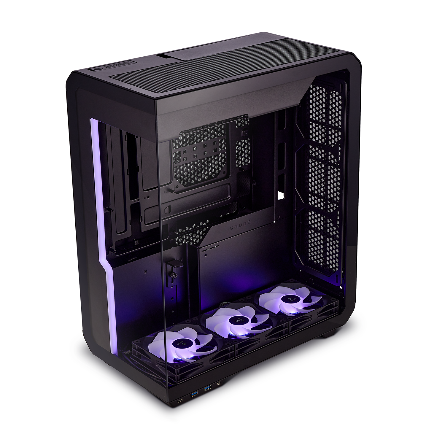 机箱内附3个ARGB反向扇叶风扇,提供稳定且高效的气流,同时可以通过机箱内建的ARGB控制板进行灯效调整。若需要更高散热需求,用户还可额外加装风扇,进一步优化气流管理。