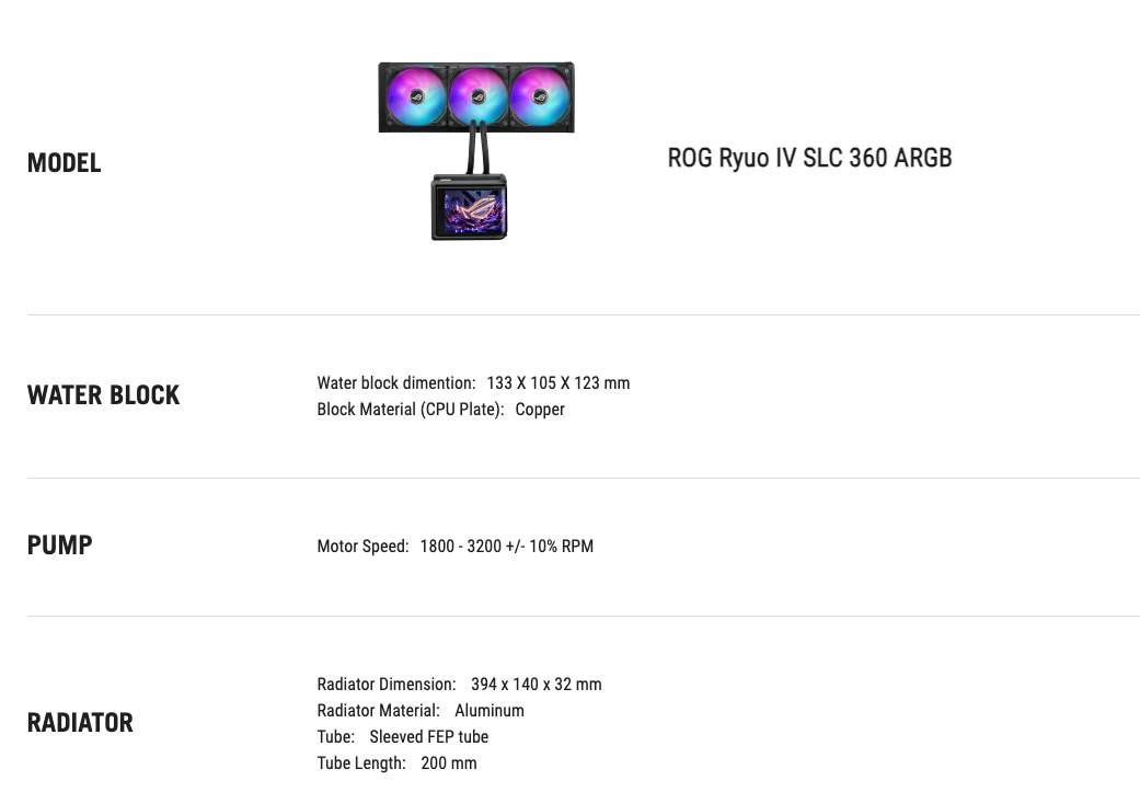 ASUS ROG Ryujin IV SLC 360 冷排尺寸:394 × 140 × 32 mm