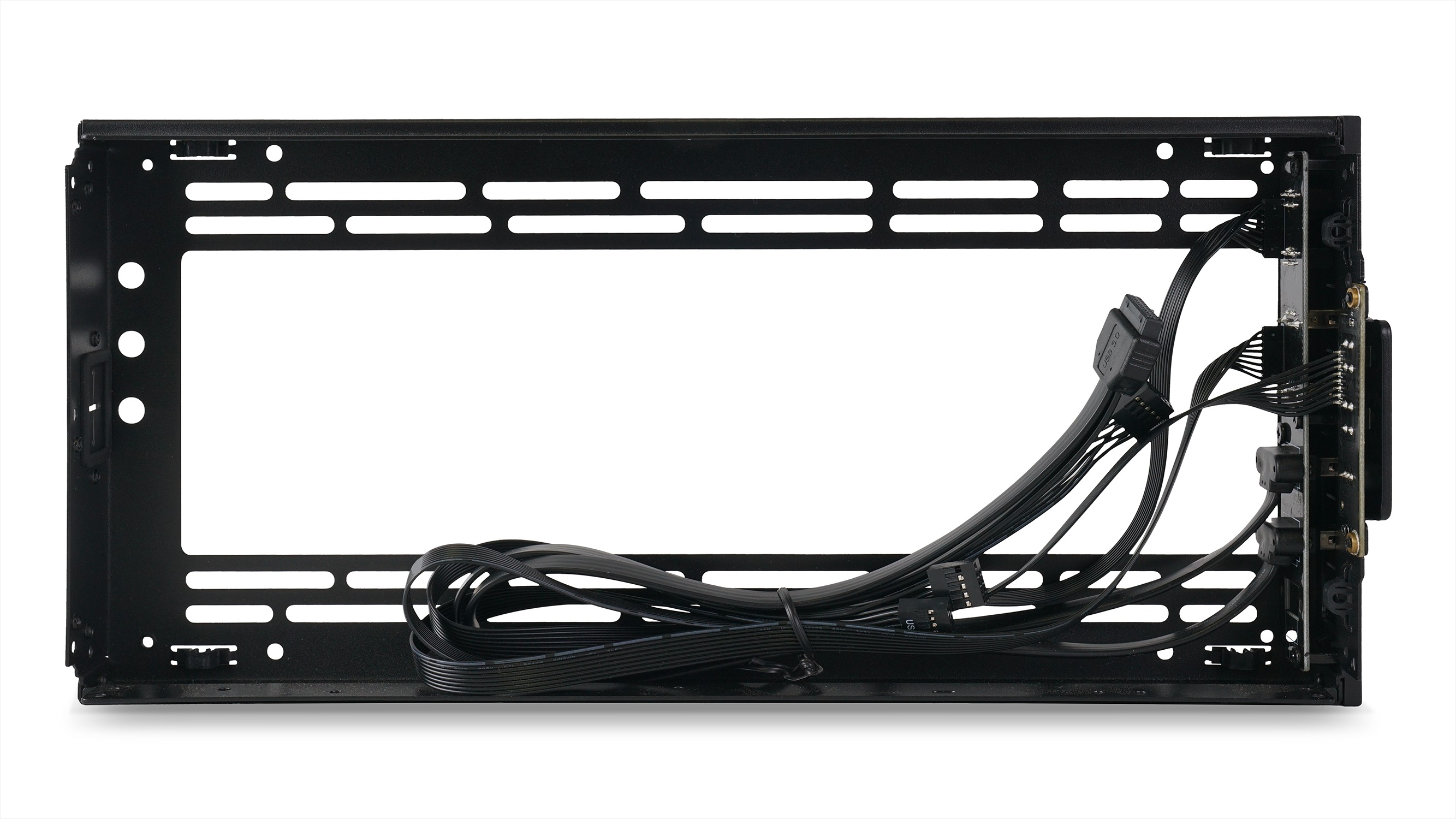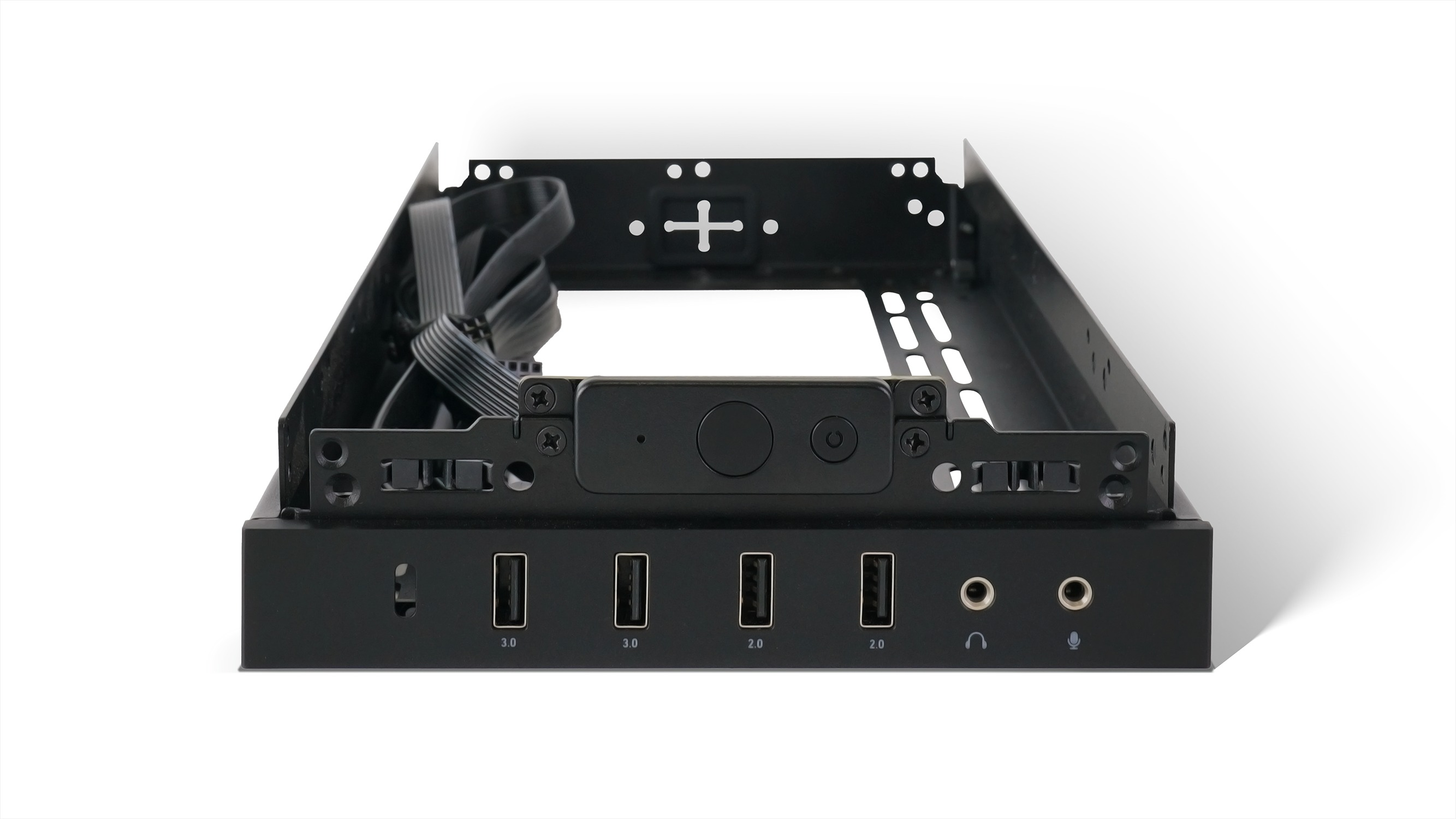 复位机箱前面板,I/O 开孔与拓展架完美契合,确保接口对齐。 | ![]() |