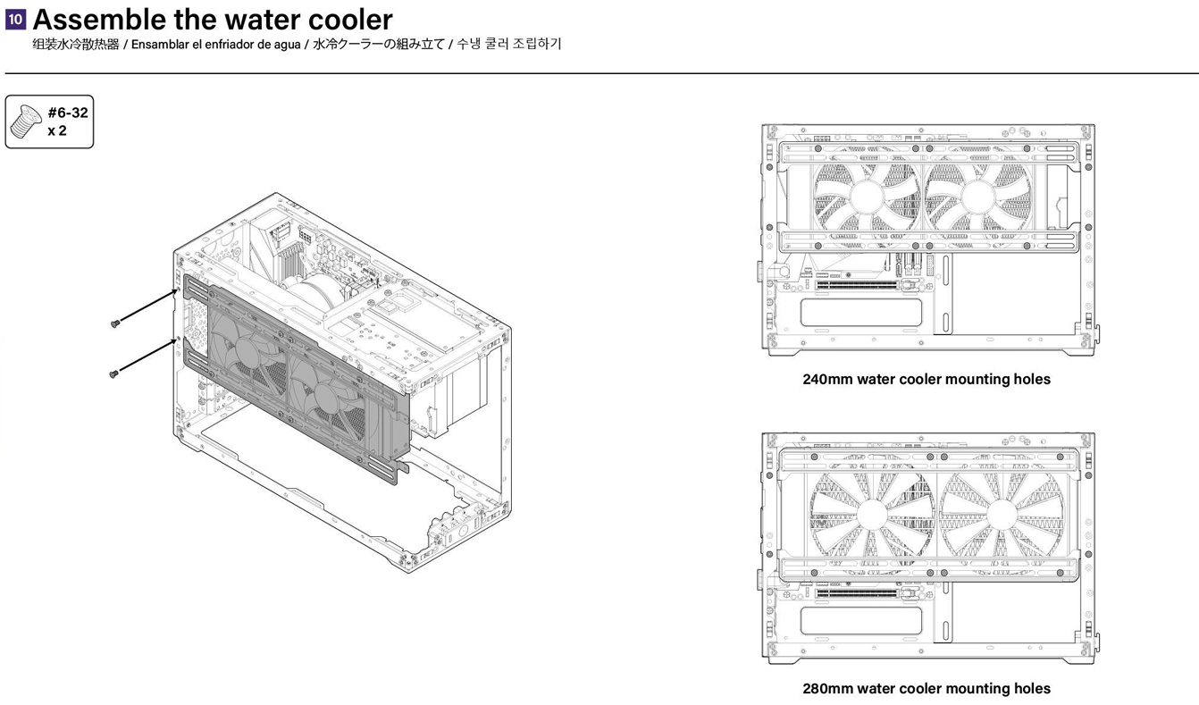 水冷安装方式可以参考前文,需注意提前更换底部扩展支架以便支持M-atx主板