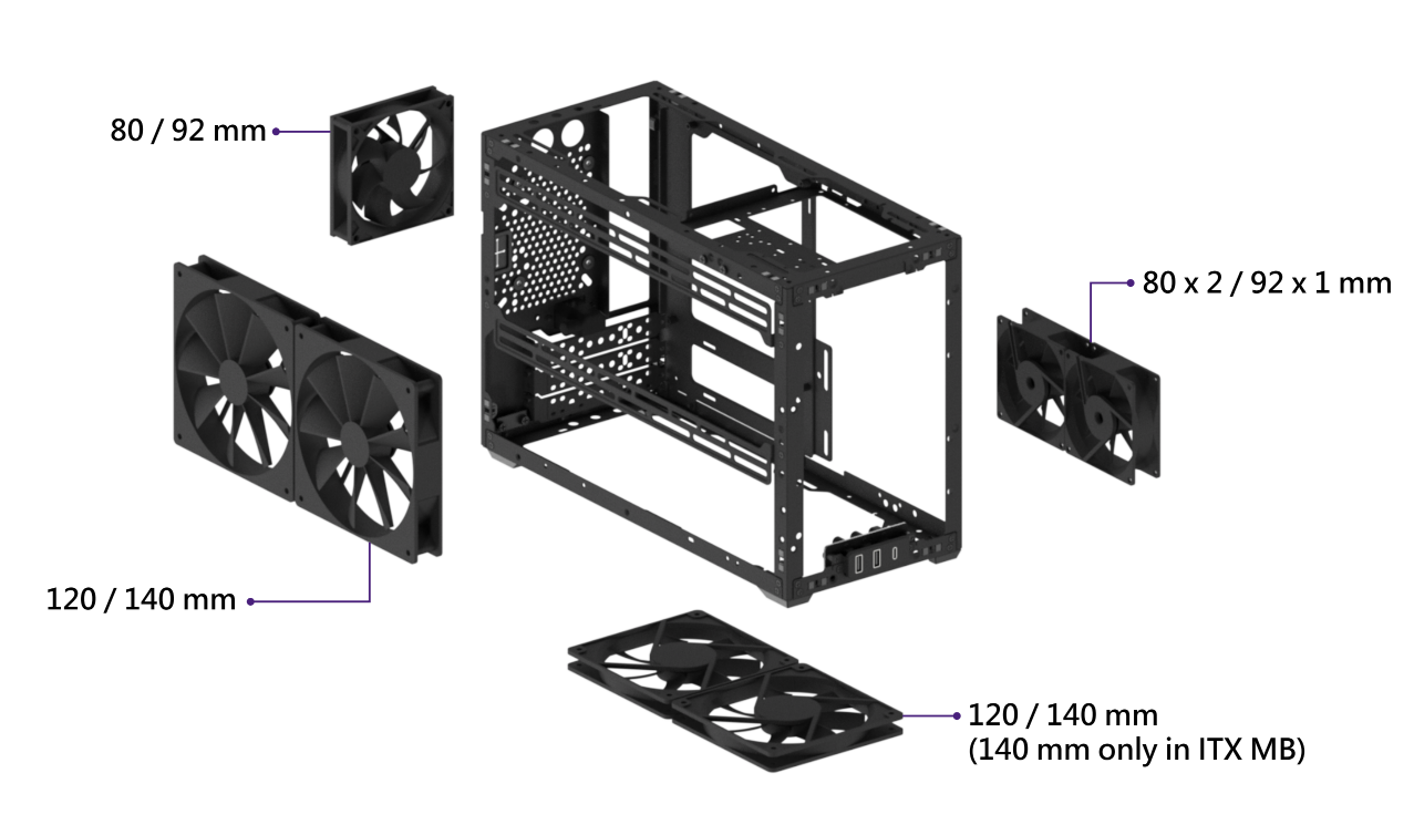 Side/back: 80mm x 2 or 92 mm x 1 | N/A |