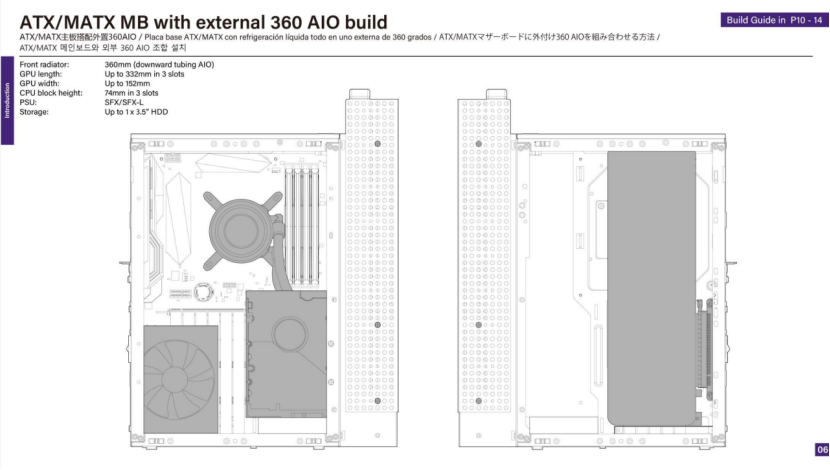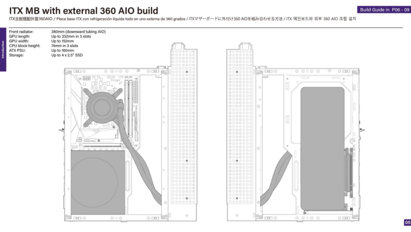 与ITX布局类似,GPU必须后置,以确保外部360mm AIO和管路布线有足够的空间。