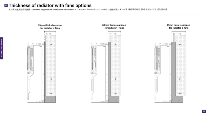 同时得益于360风扇架的灵活性,您可以通过不同的安装方式来适配不同的风扇厚度